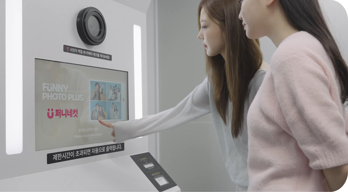 퍼니네컷은 내가 고른 배경, 소중한 사진, 나만의 스타일로 직접 꾸미는 셀프 포토 키오스크입니다.